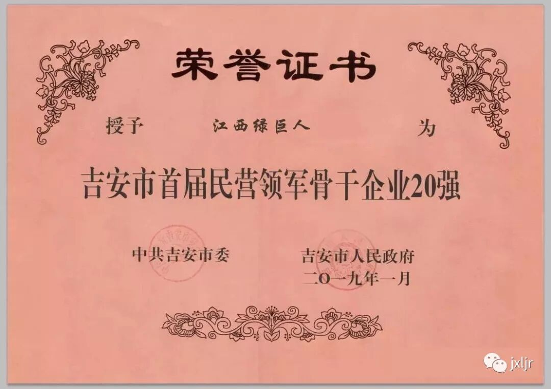 | 【江西绿巨人】喜获“吉安市首届民营领军骨干企业20强”表彰 |